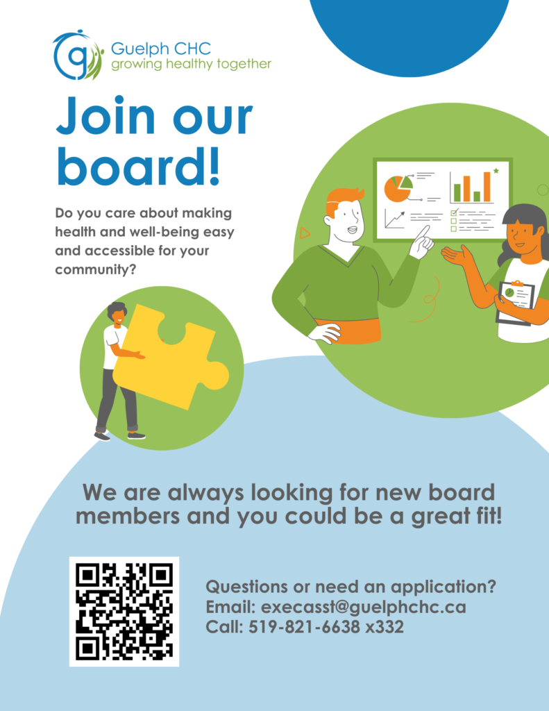 Please share a bit about yourself—your experience, skills, and why you’re interested in joining the Guelph CHC Board—and include your résumé.