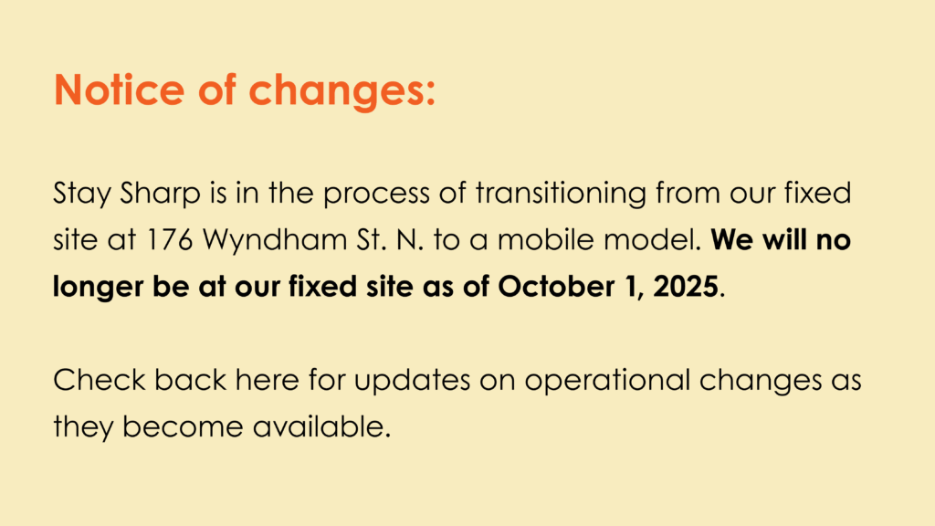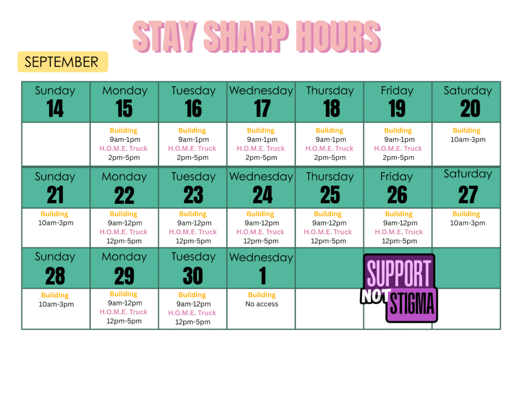 Stay Sharp is dedicated to reducing the transmission of blood-borne infections such as HIV and HCV, and minimizing risks associated with substance use.